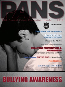Bullying AwAreneSS BULLYING PREVENTION & AWARENESS 4 0 t h A n n u a l C r i m e P r e v e n t i o n G u i d e 2 0 1 0 Cyber Bullying Benefit Hockey: PANS Annual Police Conference IN THIS ISSUE: PANS scores for local charities PANS in the NEWS PANS Junior Curling Championship Information for Parents and Kids on the risein Nova Scotia Pink Shirt Day Lady Gaga and Ellen join forces to combat bullying